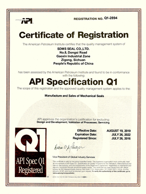 ???????2019年8月我公司再次通過審核并獲得API Q1質(zhì)量管理體系證書。???