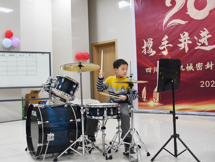 ?????? 獎勵表彰完,有一段特別的才藝展示,由倪總的兒子為全體員工獻上了一段精彩的架子鼓表演。