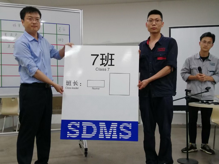 ???? 2022年6月23日,公司交付中心舉辦了“班長(zhǎng)競(jìng)聘會(huì)”,會(huì)后公司總經(jīng)理倪明為新組建的“機(jī)加7班”授牌。