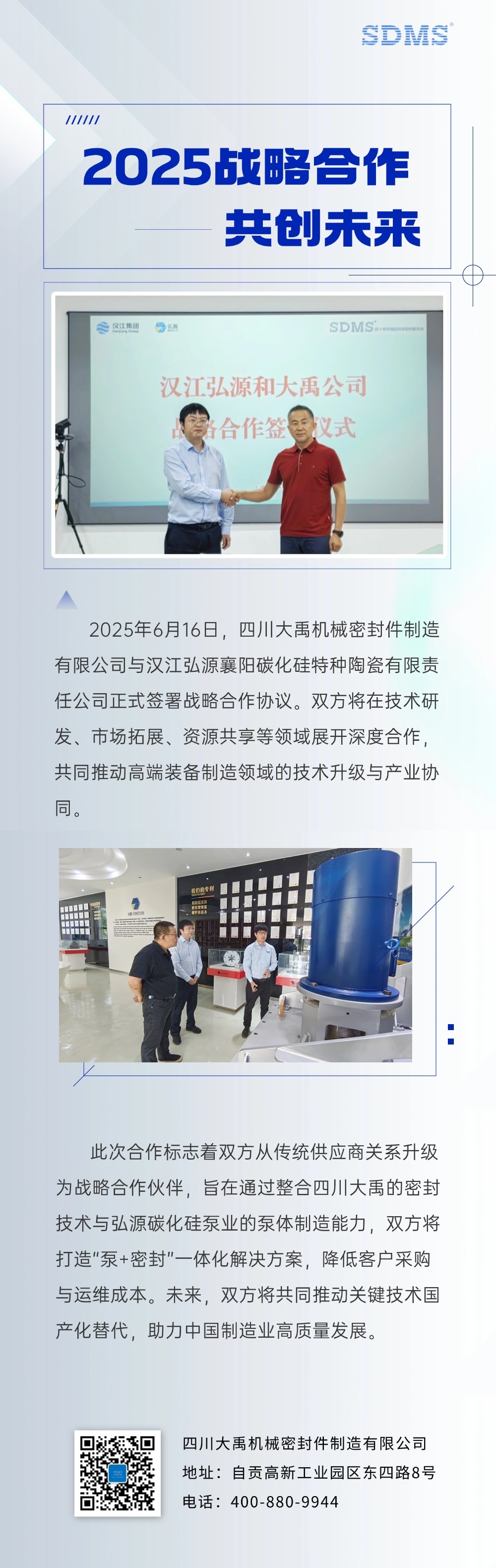 四川大禹機(jī)械密封件制造有限公司與漢江弘源襄陽碳化硅特種陶瓷有限公司簽署戰(zhàn)略合作協(xié)議,共拓高端裝備市場(chǎng)