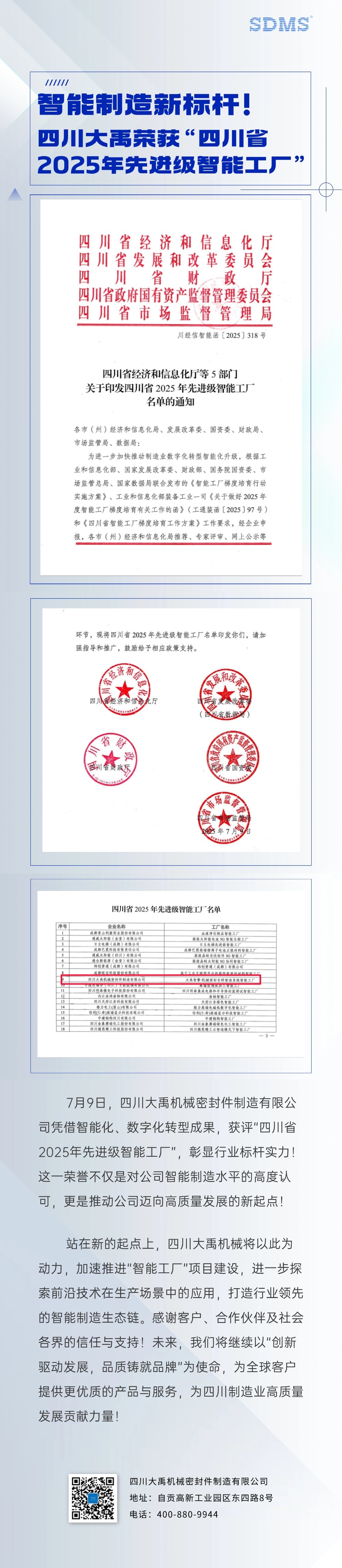 四川大禹機械入選“四川省2025年先進級智能工廠”! 以智造領跑,再攀新高度!