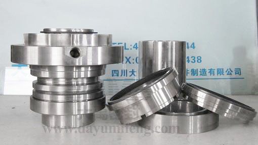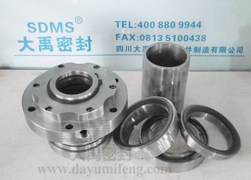 ? ? ? ? 該機(jī)械密封的分體式結(jié)構(gòu)拆解圖(軸套一份為二,動(dòng)靜環(huán)組件):?